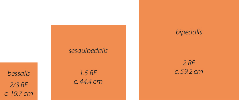 Dimensions of the brick modules most commonly used in Roman baths.