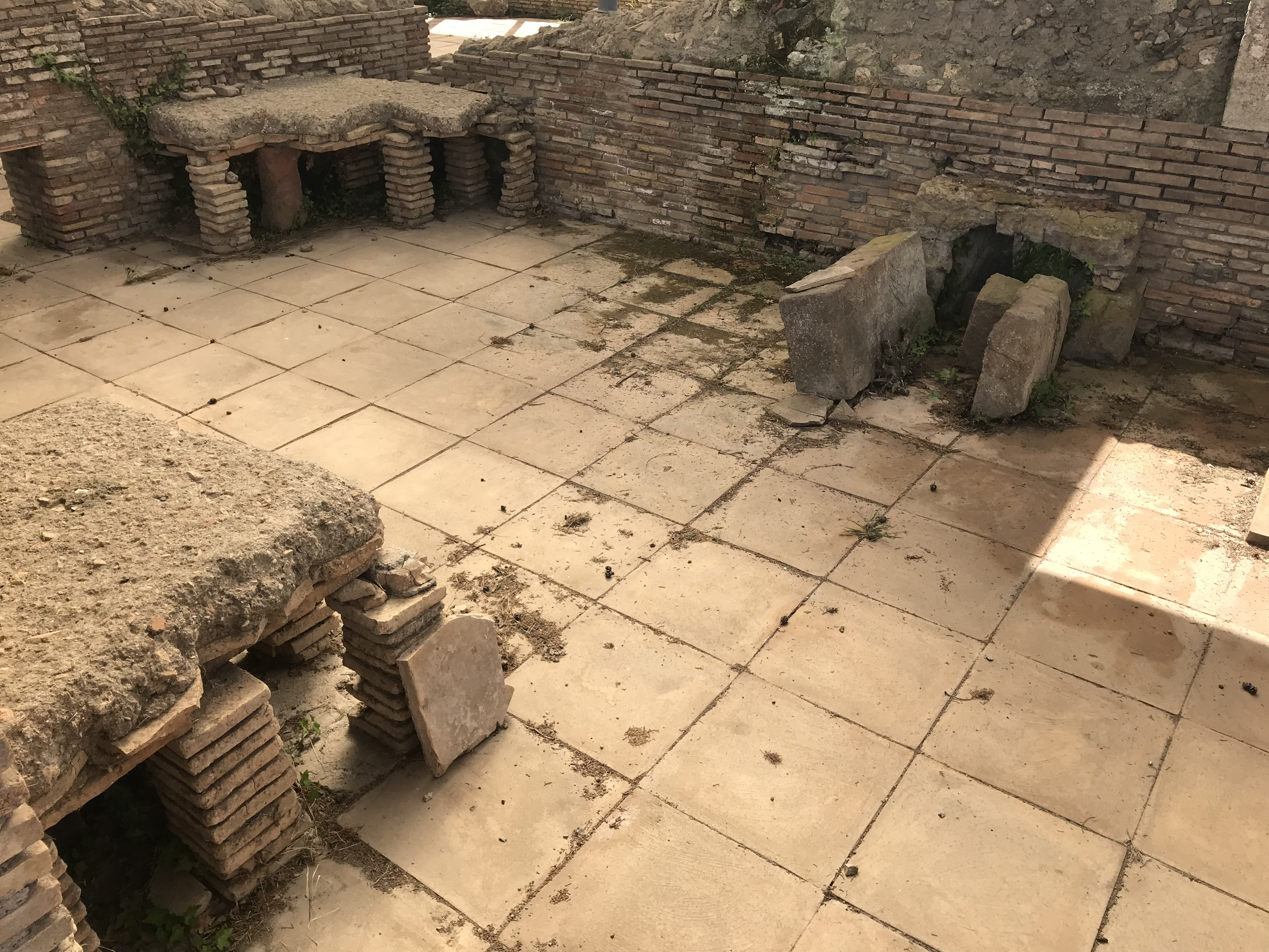 L: Remains of the hypocaust in the baths of Ferentum, in Lazio (photo Allison Smith).